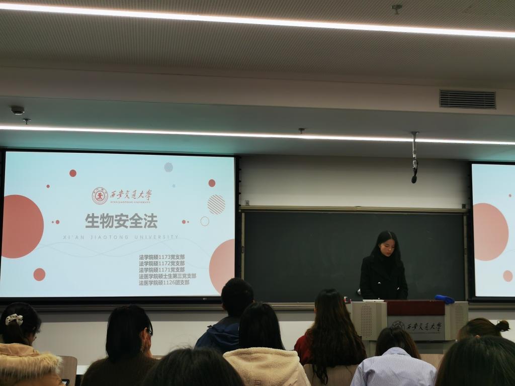 爱体育平台硕1173班党支部组织委员罗梓瑜做了《中华人民共和国生物安全法》(以下简称生物安全法)的详细解读。她详细介绍了生物安全法的立法目的、原则和适用范围,并且着重介绍了生物安全法的立法亮点:明确了生物安全风险防控的基本原则和制度、建立健全了生物安全风险防控的领导体制。她认为2021年4月15日,中华人民共和国生物安全法正式施行,恰逢第六个全民国家安全教育日,赋予了这部法律施行以特殊的意义。生物安全关乎人民生命健康,关乎国家长治久安,关乎中华民族永续发展,是国家总体安全的重要组成部分,也是影响乃至重塑世界格局的重要力量。