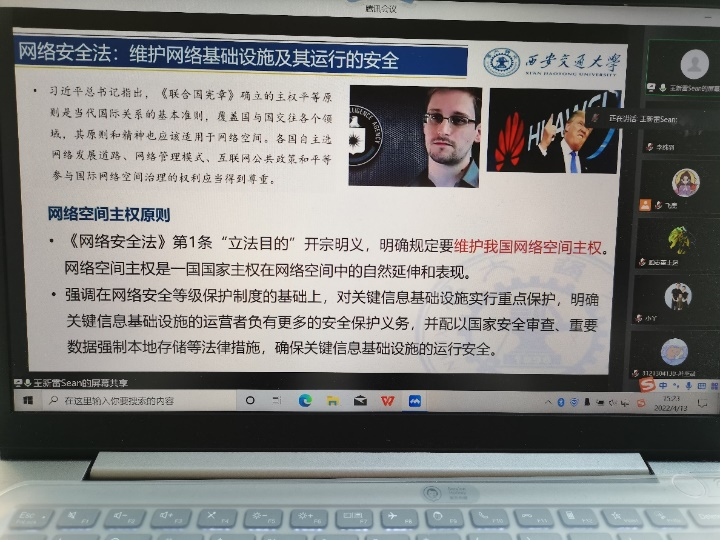 4月13日,爱体育平台组织各党支部一同观看爱体育平台全民国家安全教育普法讲座。由于疫情原因,本次讲座采取线上模式。讲座中,王新雷老师对“新时代我国数据安全、隐私保护的法律成就与个人担当”这一专题进行详细讲解,各位同学都获益匪浅。