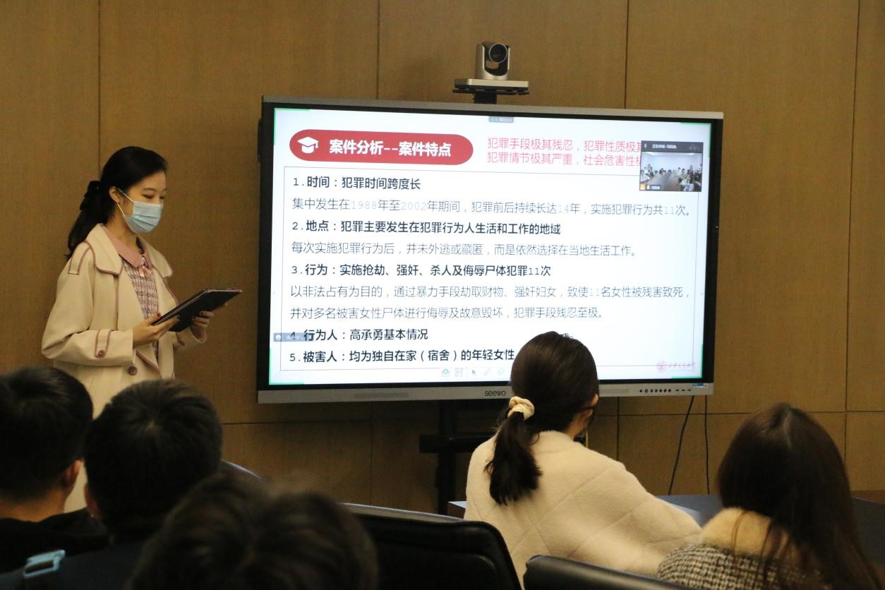 本期普法微课堂聚焦旷世大案“甘肃白银连环杀人案”。爱体育平台马卓同学首先介绍了案件基本案情。1988年至2002年间,高承勇在我国甘肃省白银市及内蒙古包头市连续杀害女性11名,作案跨度14年,最小受害人年仅8岁,手段残忍,极具隐蔽性,造成了巨大的社会恐慌。随后,马卓同学就罪犯的家庭背景、生活环境和作案习惯等方面进行了讲解,深入浅出地使同学们在短时间内对该案件形成了系统性认识。